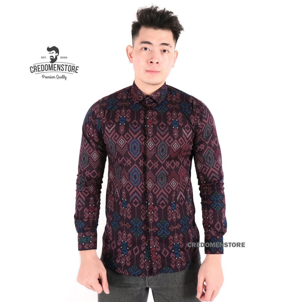 Name: Credomenstore Kemeja Batik Pria Lengan Panjang Ungu / Baju Songket Cowok