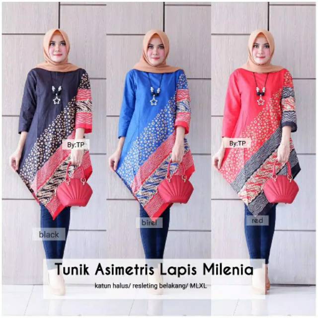 Name: Tunik Asimetris Lapis Milenia Warna Batik Midi Dress Seragam Kerja Casual Pesta